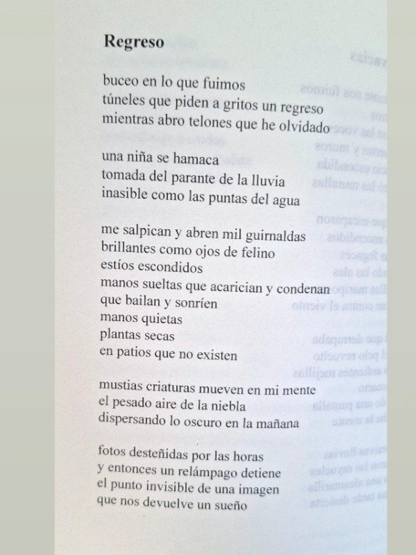 En el libro se despuntan dos partes que sostienen el ritual poético. Se trata de poemas, cuentos y relatos que indagan la memoria, el amor, el paso del tiempo.